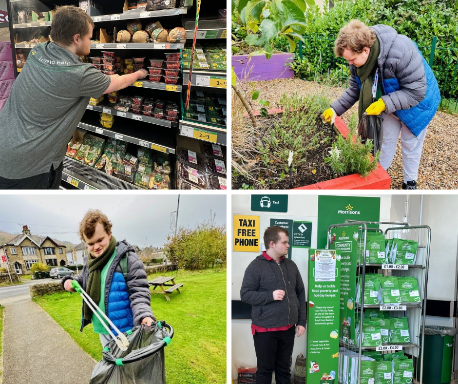 Since then, Toby has made amazing progress. He now volunteers at Skipton Holy Trinity Church, Morrisons, and Airedale Hospital, gaining confidence, independence, and social skills. He’s moved from needing one-to-one support to working independently and chatting comfortably with others.